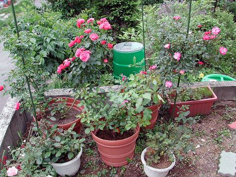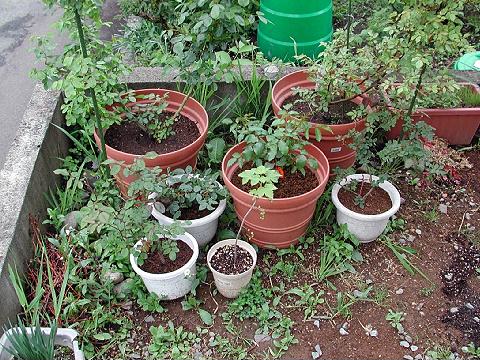 植え替えたばかりのバラもあります。全体的に遅い雪にやられています。