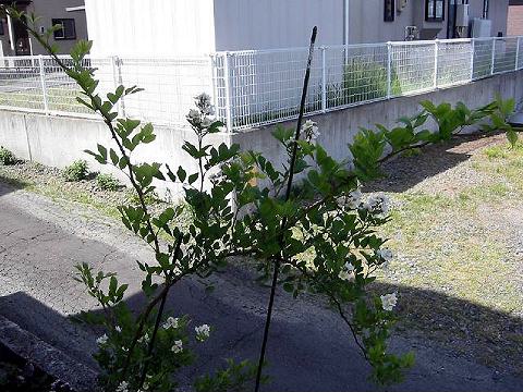 昨年伸びた長いシュートには、たくさんの花枝が上に向かって伸び、白い小さな花