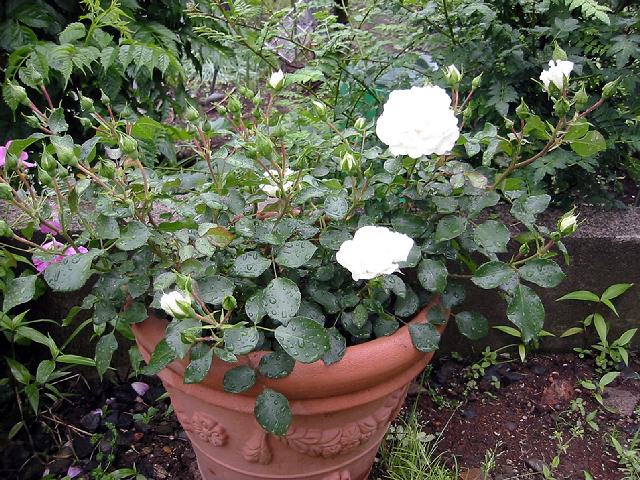 2003年は、早い時期にアブラムシ対策のつもりで、オルトラン粒状を、鉢の表面に